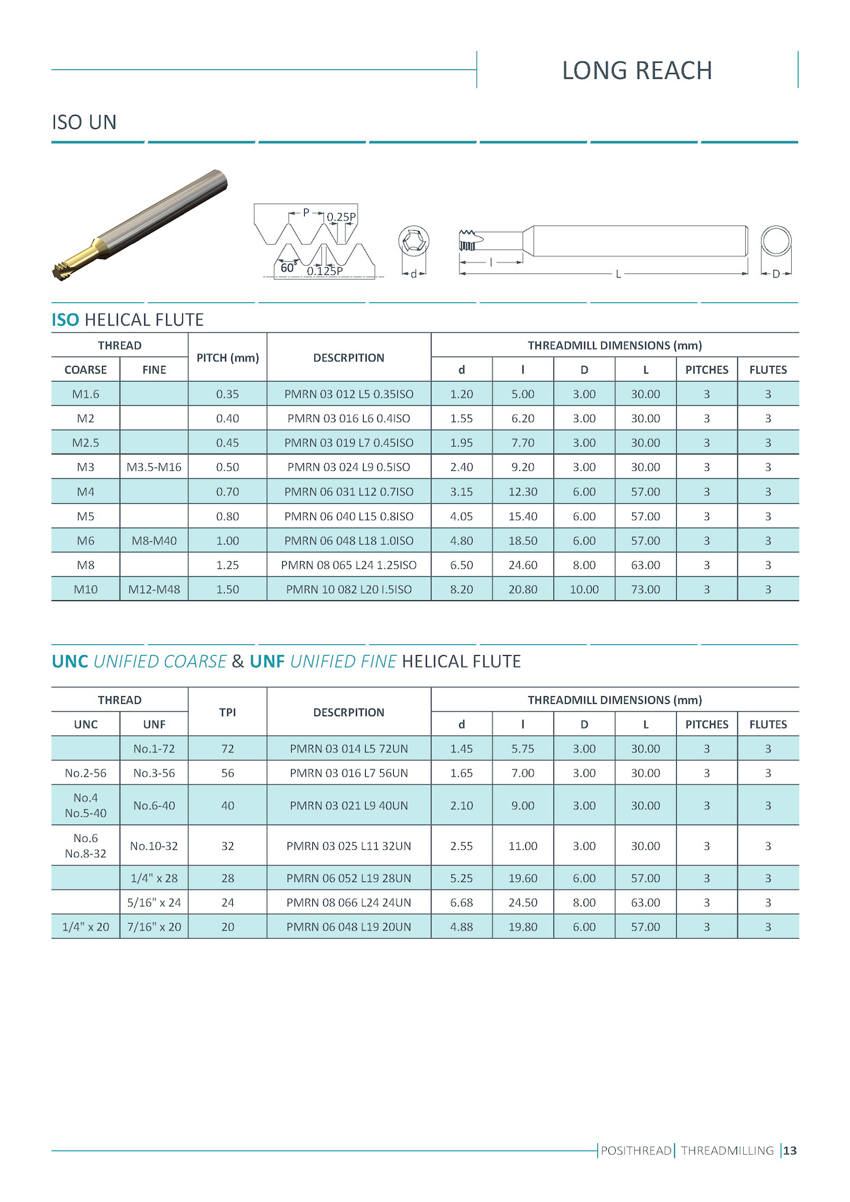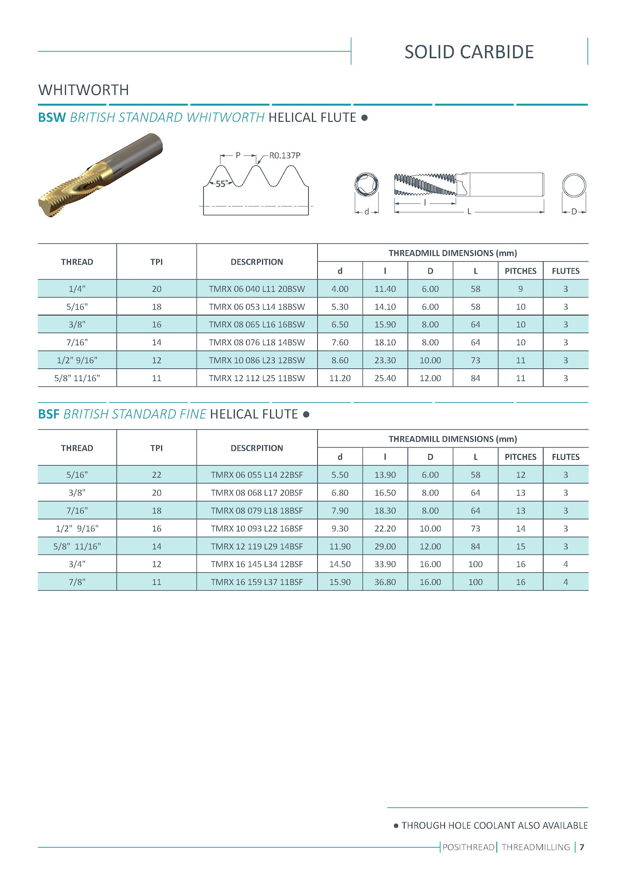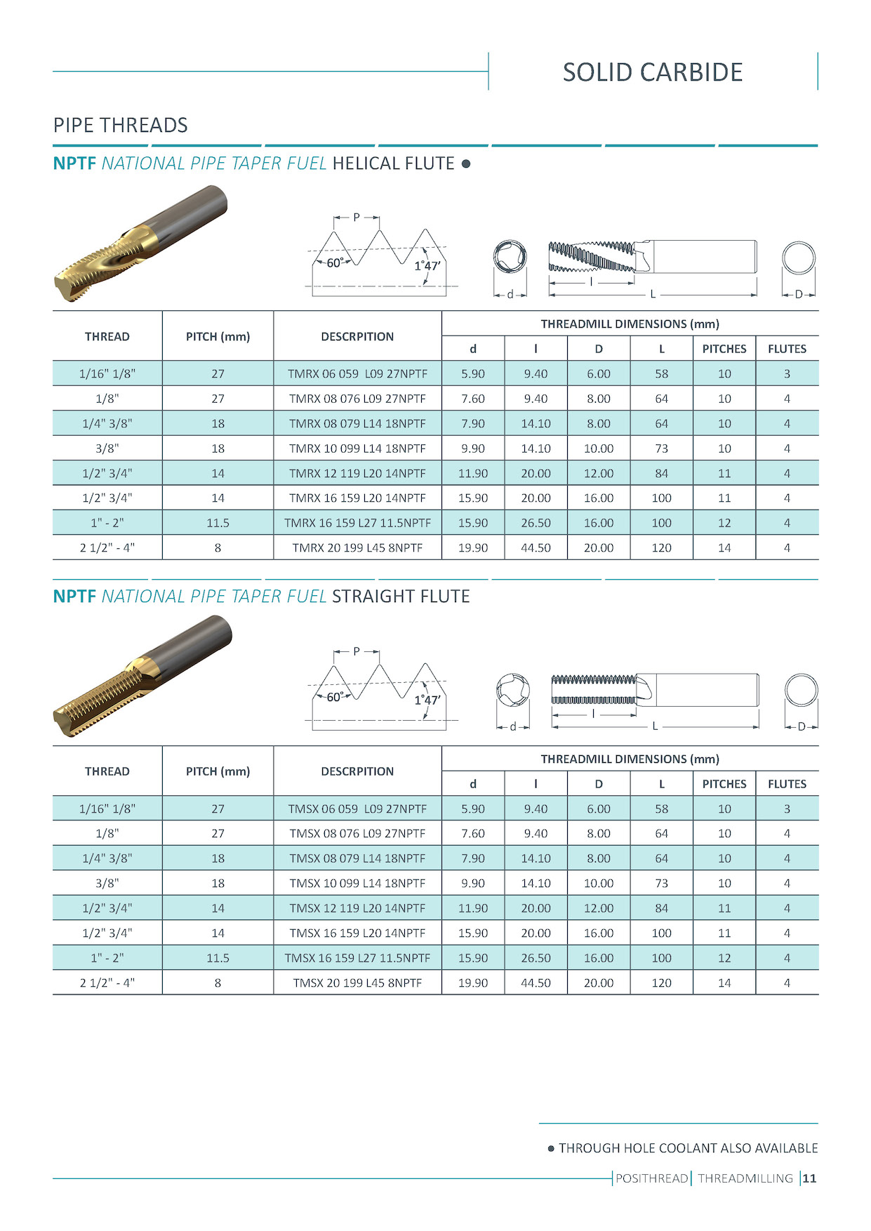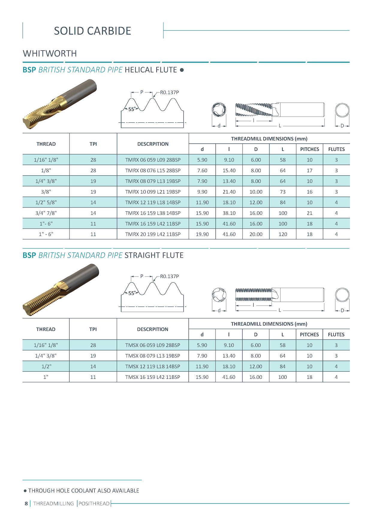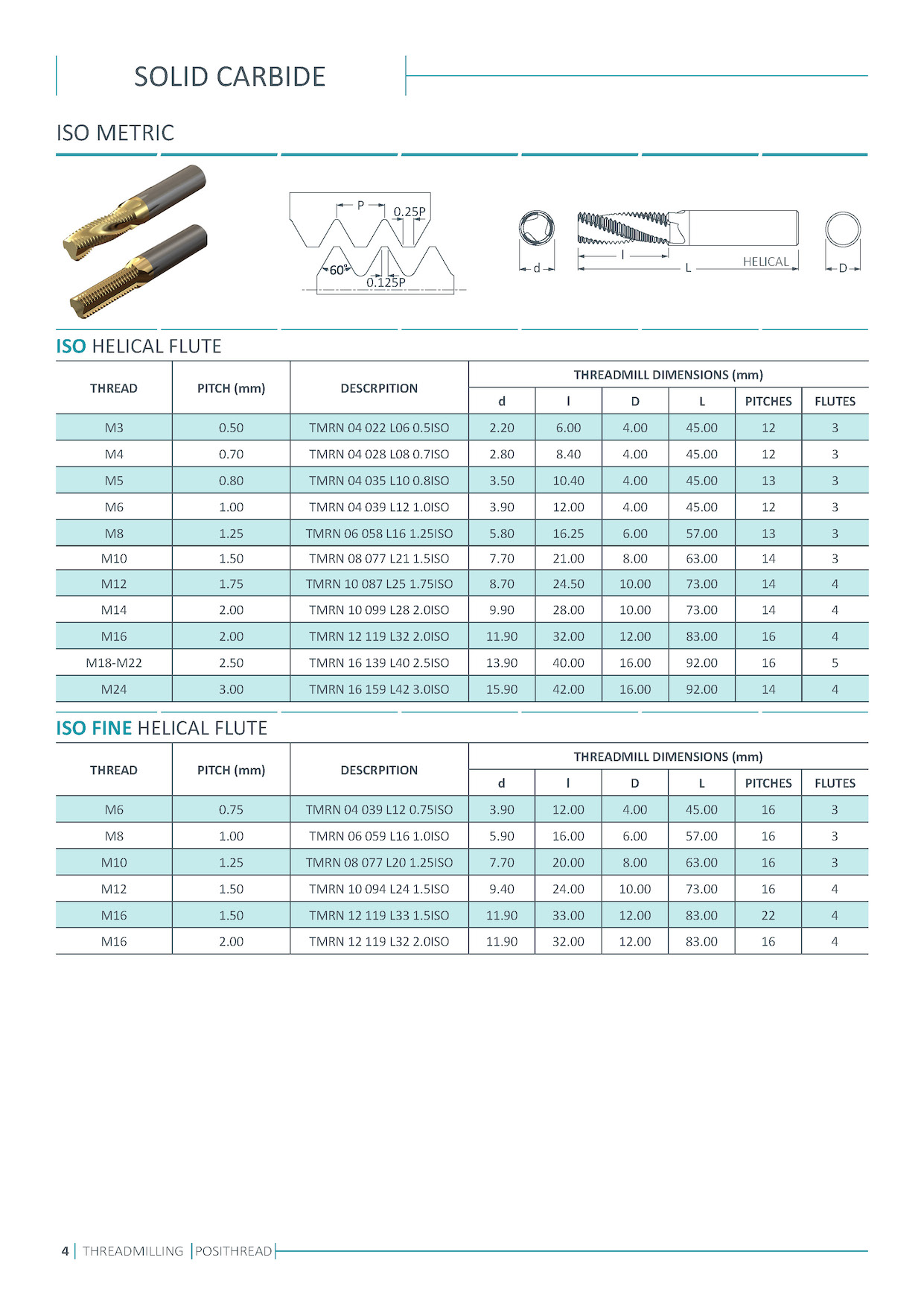 Solid carbide thread milling cutters. Single and multi flutes